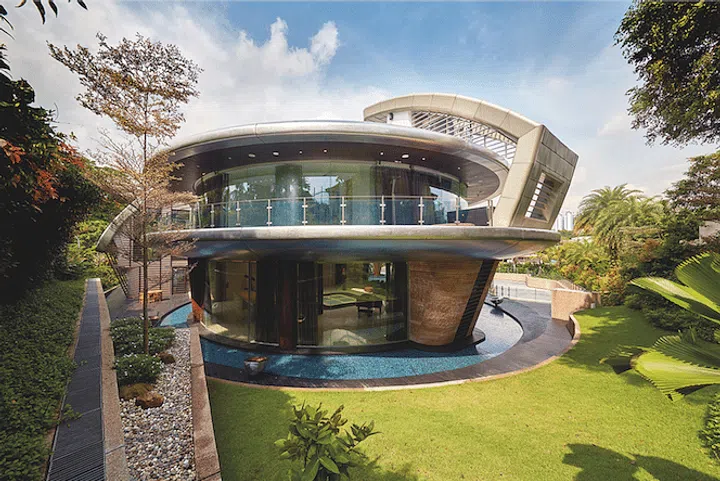 This futuristic-looking home is a colossal sculpture that houses generous spaces and elements inspired by Feng Shui principles.