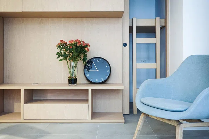 House Tour: A gorgeous 600sqf apartment in Hong Kong with wood and pastel blue hues