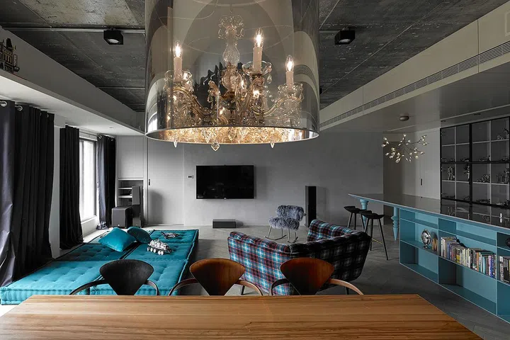 Designed by Taipei-based interior design firm Ganna Design, there is no lack of statement pieces in the unit, especially with very bold choices of lighting fixtures throughout.
