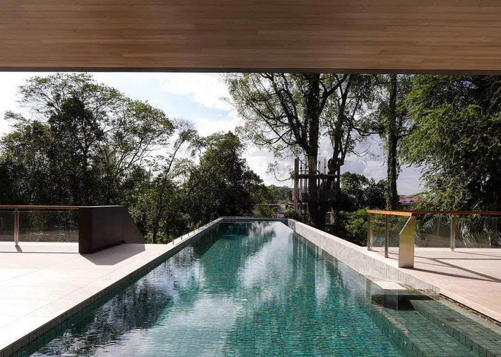 The pool leads to the sight of a treehouse, which was built by professor Joseph Lim of the National University of Singapore's architecture faculty for a previous owner.