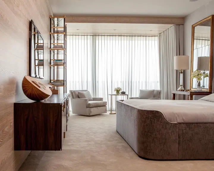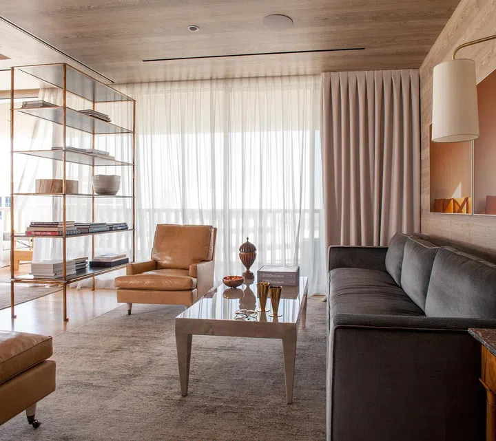 Sam’s brief to Windsor was to incorporate great art walls for his collection. “He wanted an interior that is contemporary, but warm,” she elaborates, adding that he sought a mixture of items of provenance, and modern elements. So, she created a relaxed California-style interior that took advantage of the sweeping views of the city skyline – accorded by the tower that is 15 storeys taller than any building within a two-mile radius.