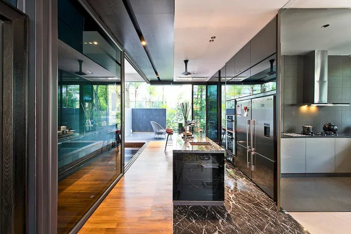 Homeowners Kevin Tham and Peggy Toh purchased this semi-detached property about seven years ago, but had it tenanted out as they were living in Hong Kong. Upon their return to Singapore, they embarked on a major renovation project that redefined the spaces — in order to create a family home tailored to their needs.
