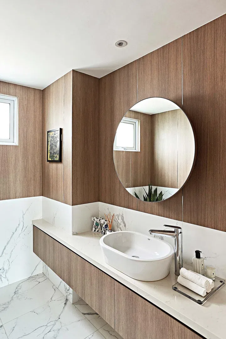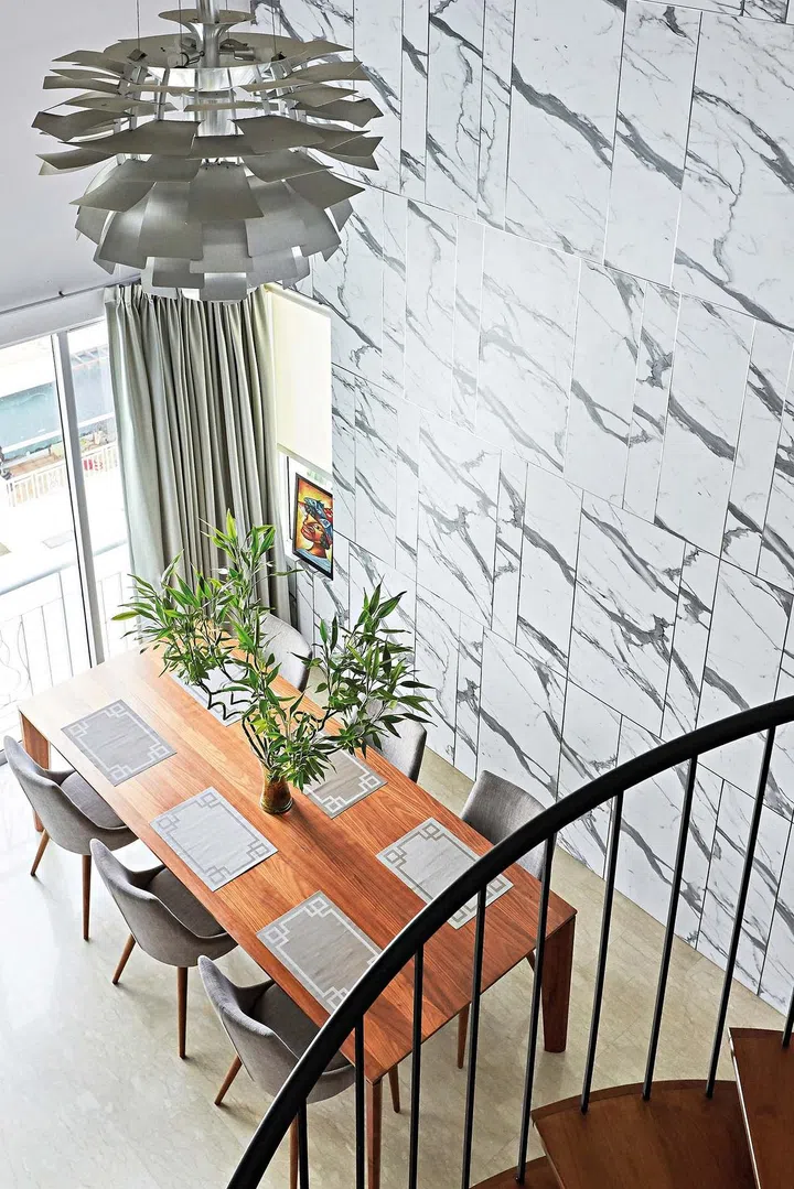 House Tour: A minimalist 4-bedroom penthouse in Sembawang with soaring marble-look walls