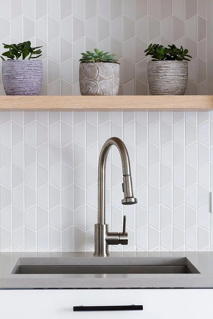 Minimalist, vintage-inspired fittings were chosen for the second bathroom.