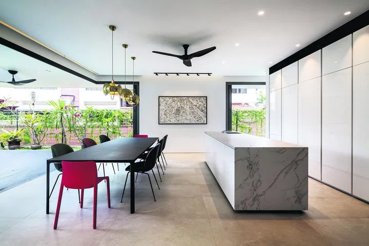 The ground floor of the 4,150sq ft two-storey home with an attic has a ground floor designed to accommodate big gatherings.
