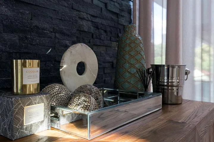 Vignettes (the grouping of a curated selection of products) such as this one showcase the homeowners personality and knick knacks.