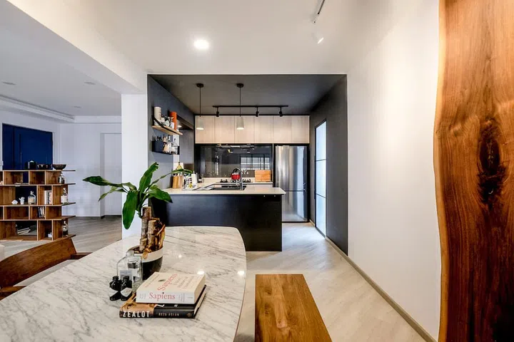 Home to a couple and their newborn child, the owners wanted their five-room flat in Holland Close to be able to accommodate the evolving needs of their young family.