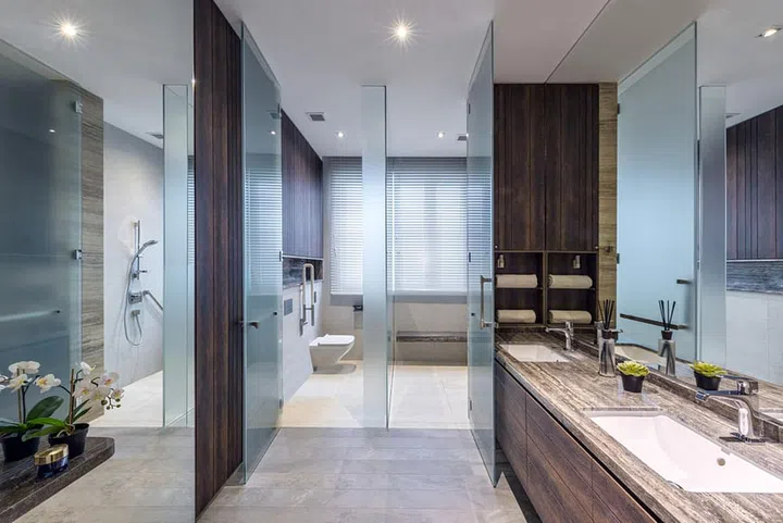To future-proof the home, the doors to the senior couple's bedroom and bathroom are designed slightly wider than usual. The entrances can accommodate a wheelchair with ease if needed. "We like how Sarah has made these enhancements subtle such as making the larger doors part of the design," says the owner.