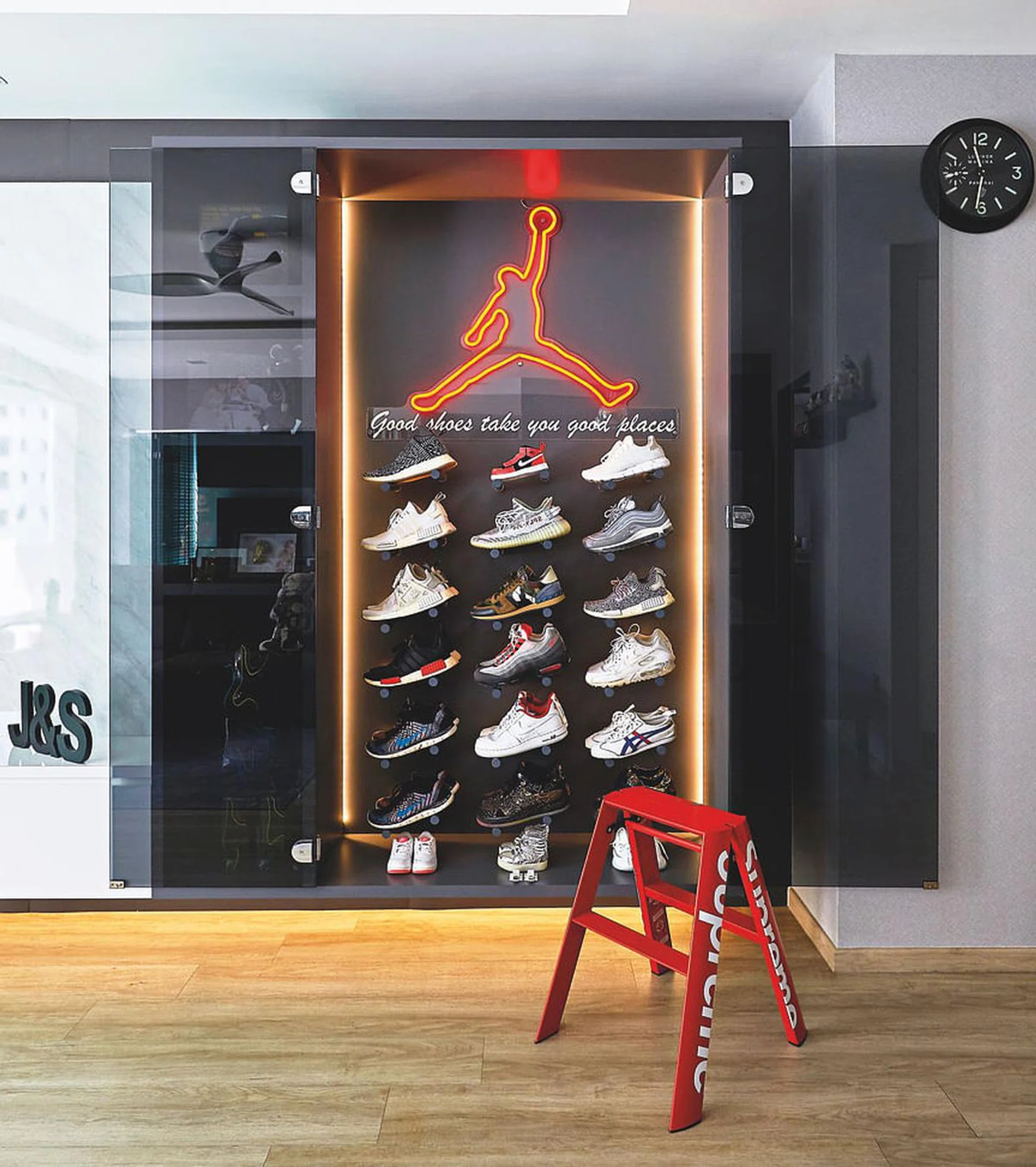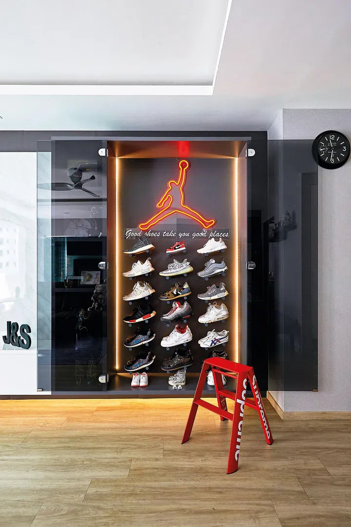 One important item on Jeric's wish list was a built-in display cabinet for his Jordan shoe collection.