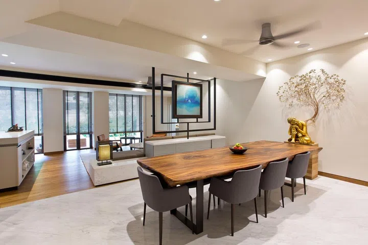 Located in Balmoral Park, this simple contemporary home exudes a relaxing and even chalet-inspired look. The homeowner decided to make good use of her view by placing a long wooden dining table -- which has space for your legs, too, if you don't feel like sitting cross-legged! -- that's perfect for late-night dinners with friends.