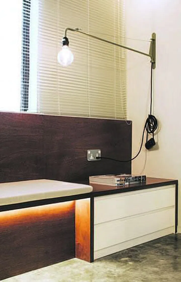 A bench installed under the windows by the entrance provide extra seating space when Mr Foo has friends over. “Mikael thinks about all the details, so every inch in the apartment is fully made use of,” says Mr Foo. For example, Mr Teh attached a drawer to the bedroom wall near his bed, so it’s easy for Mr Foo to reach over to grab a book for some bedtime reading.