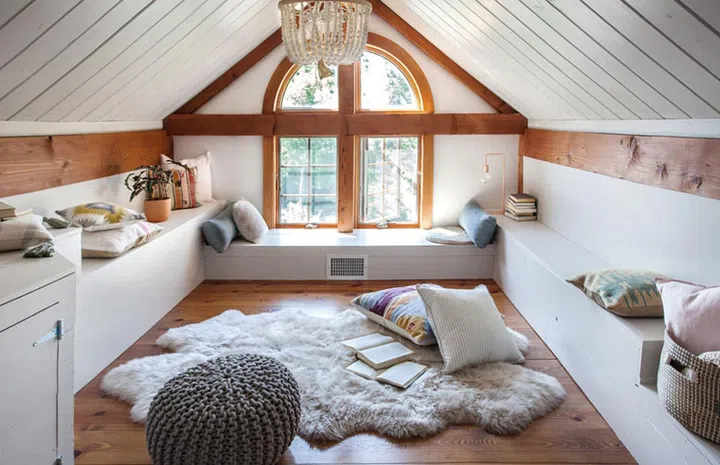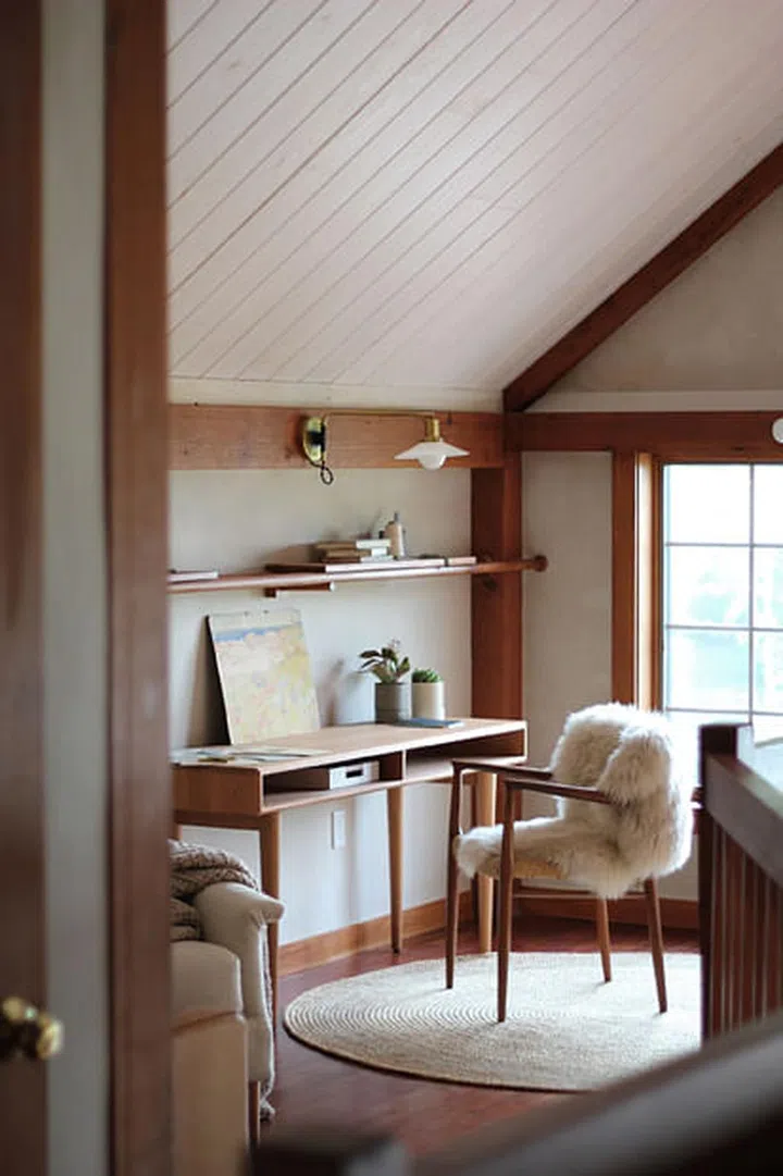 Even the study room needs a touch of elegance, which the interior designers created with a furry throw.