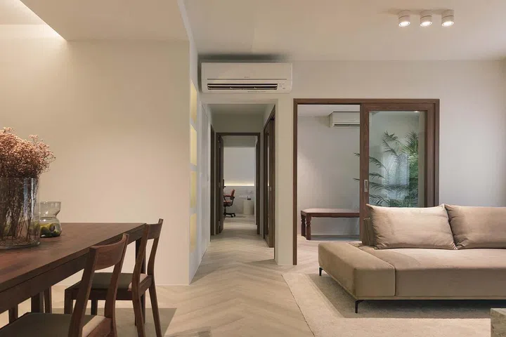 The original layout of the five-year-old resale flat underwent extensive reconfiguration and involved moving the existing corridor by 600mm.
