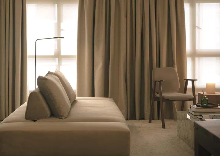 The decision also arose from a contextual factor- the dark blue glass facade of the residential block directly opposite theirs reflects a significant amount of blue light into the couple’s apartment.