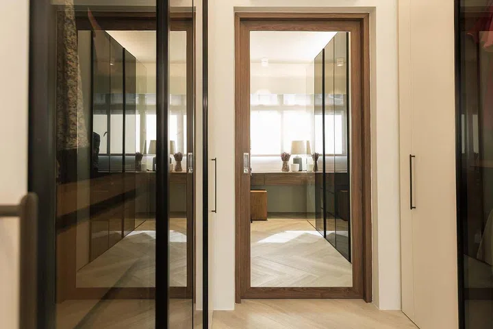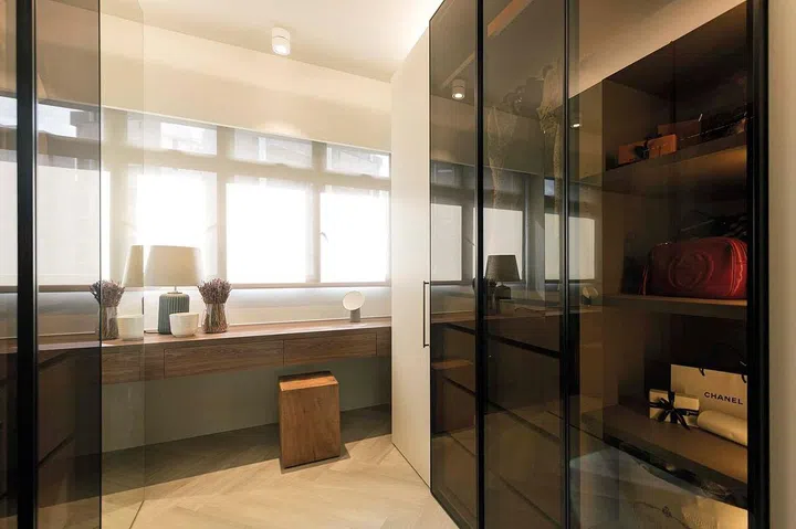 The study corner in the master suite takes on a similar formal expression as the walk-in wardrobe.