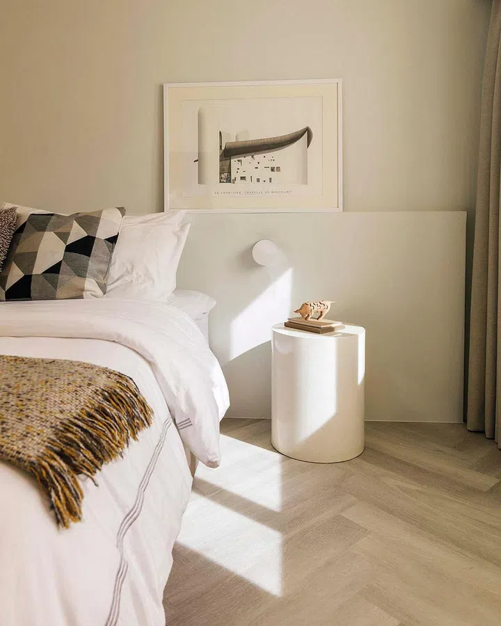 Off-white, cream and ivory colours make the interior feel more cosy and intimate, while avoiding too stark a contrast between pure white colours and darker wood tones.