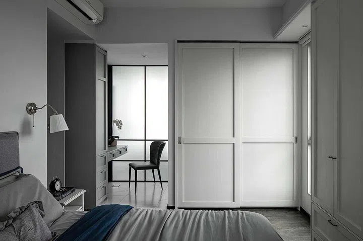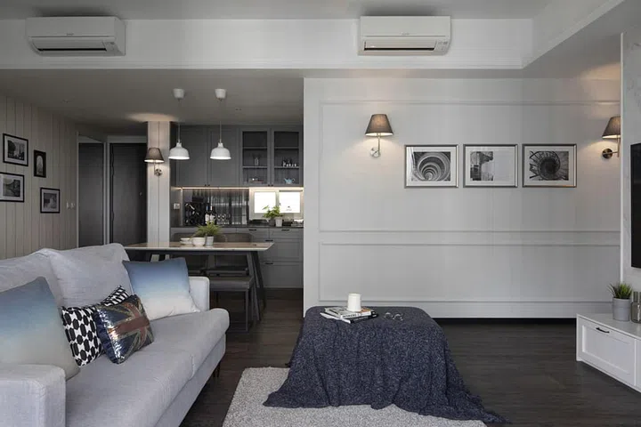 “The general colour scheme is kept neutral with white as the main colour, plus greys and blacks to maintain a clean look reminiscent of traditional American homes and in line with the owners’ tastes.”