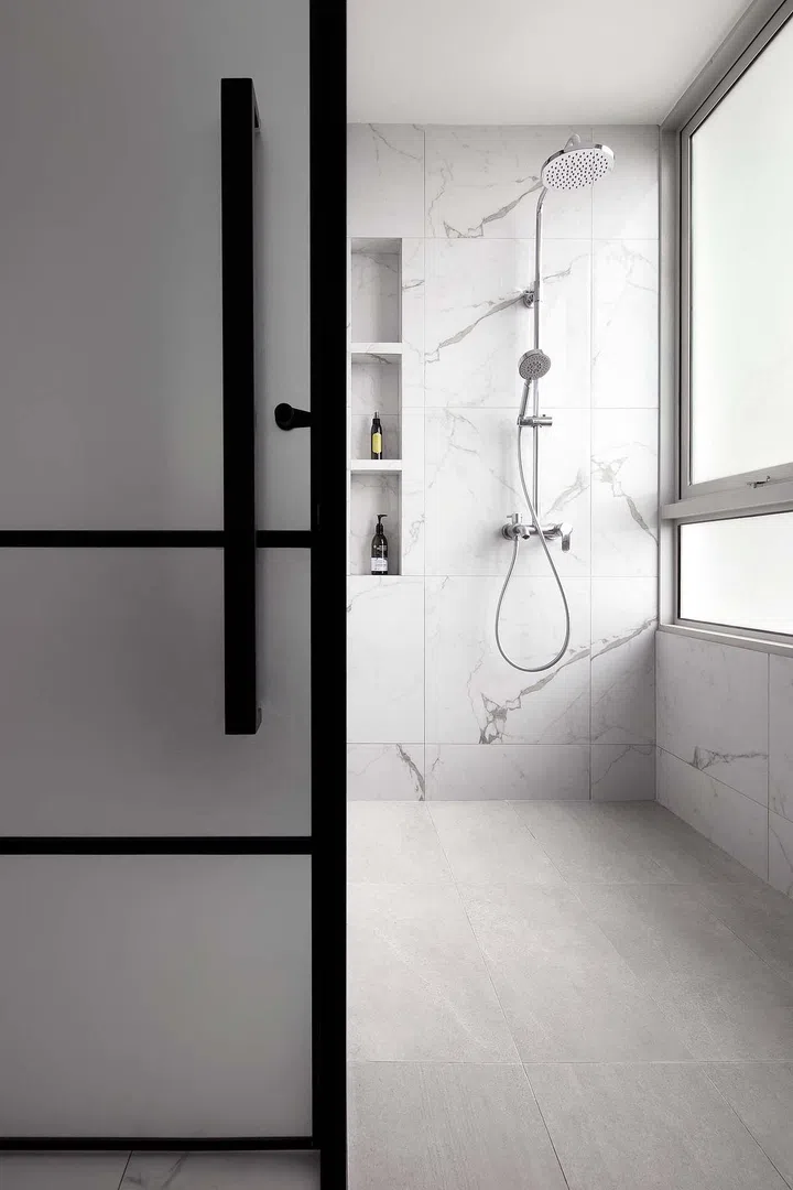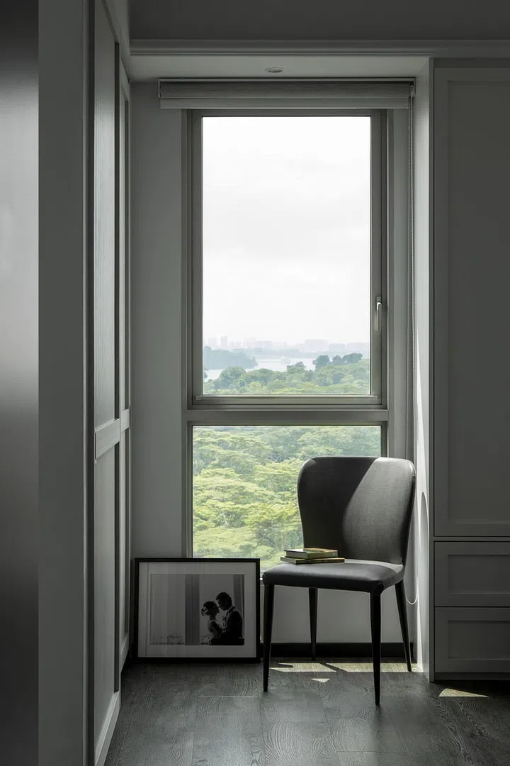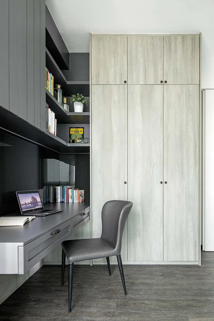 To accommodate this, the original bathtub was replaced with a shower area. Clad in off-white, the bathroom may now be space-efficient but it still feels luxurious. It is also one of the owners’ favourite spots in the house, where they can rejuvenate after a long day.