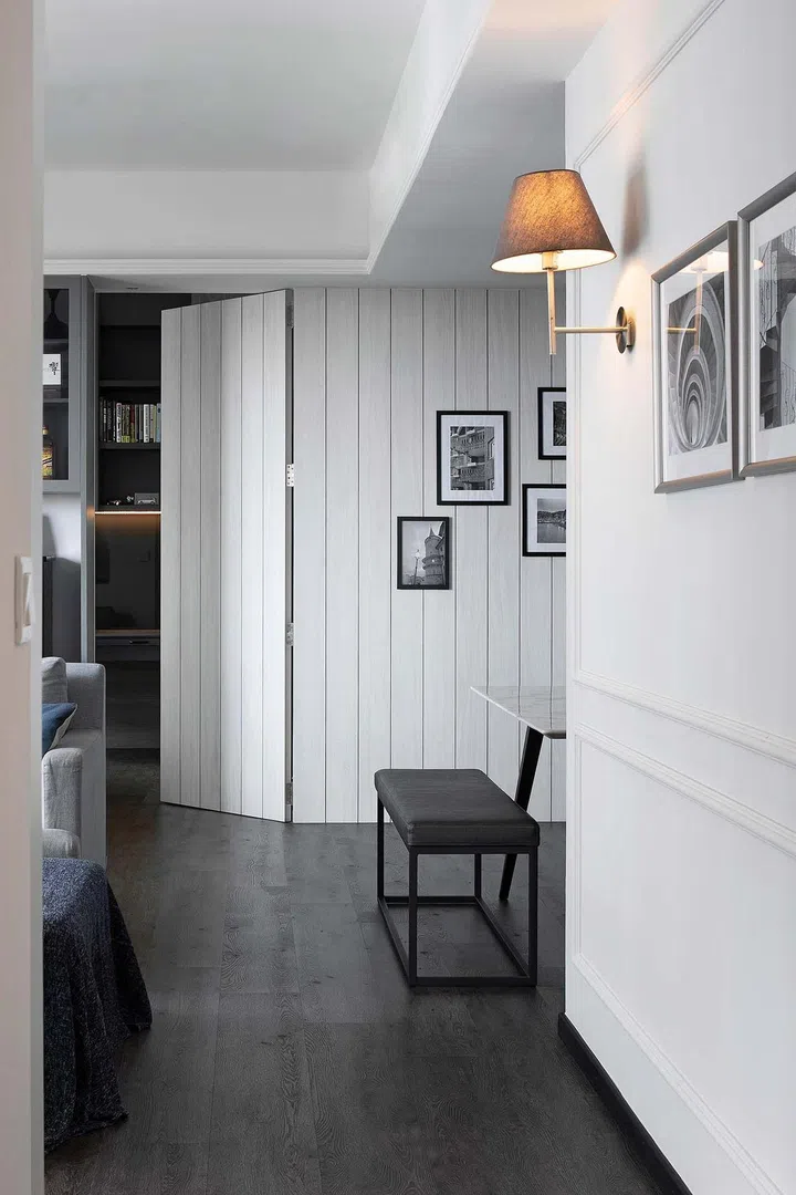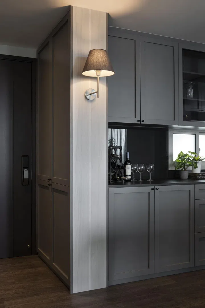 Looking at the photos of this four-bedroom condominium apartment near the Bukit Panjang area, one would not guess that it is home to parents with two young children. The design has a sense of cool masculinity and a certain discipline about it.