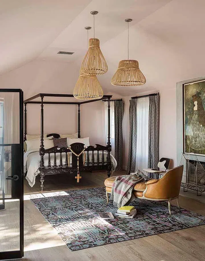 They invested in several key elements like the expensive reclaimed hardwood flooring from Schotten and Hansen and the tiles for the master bedroom, and used inexpensive materials like subway tiles elsewhere.