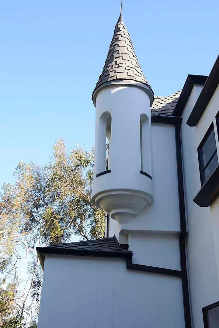 Seen from the lush garden, The Castle’s unique architecture does live up to its name.