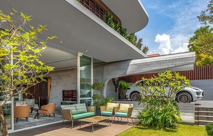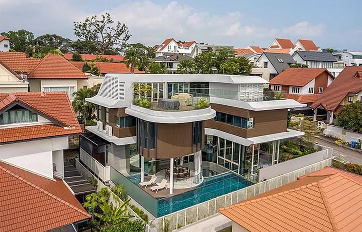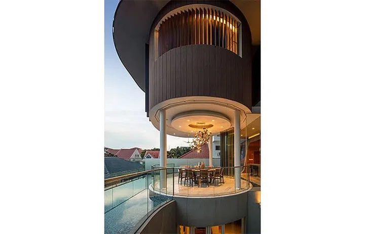 Don't expect to find any extraterrestrials here, but the roof of a house sitting on a hill in Siglap roof does resemble a spaceship. Designed by architects at A D Lab, the 6,830 sq ft property was built to accommodate a married couple and their three sons.