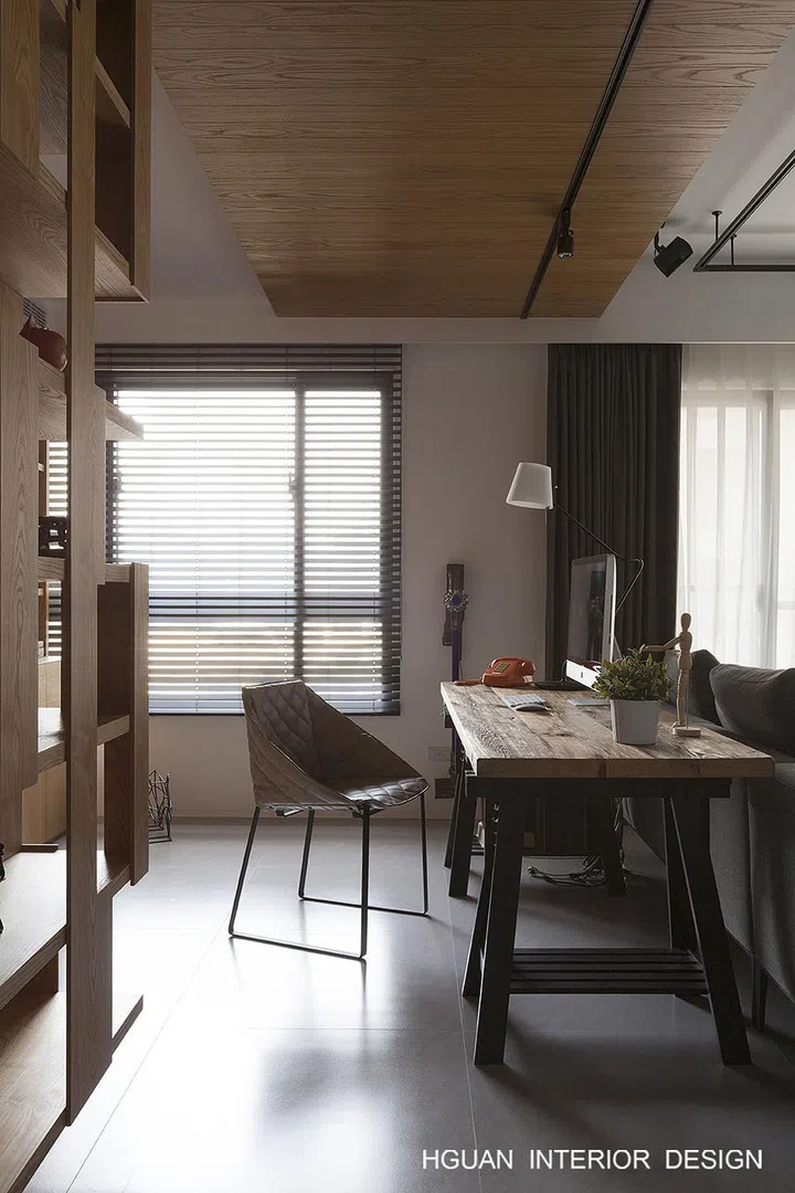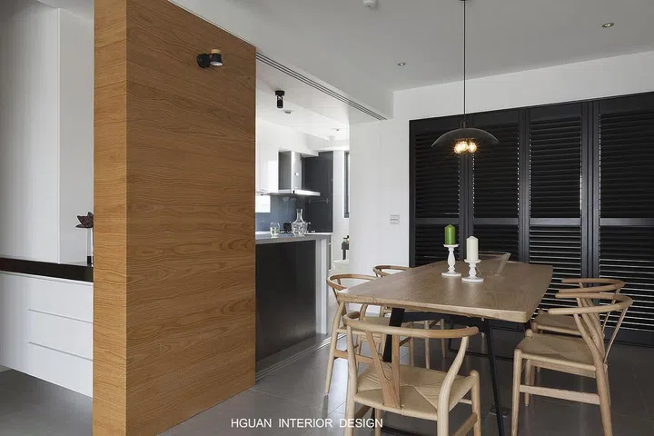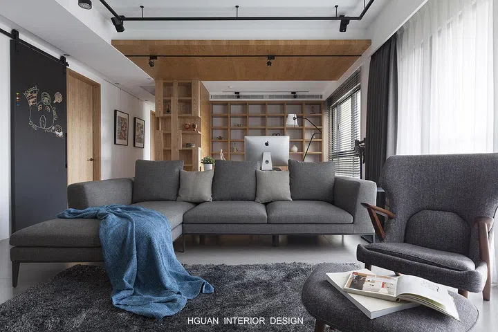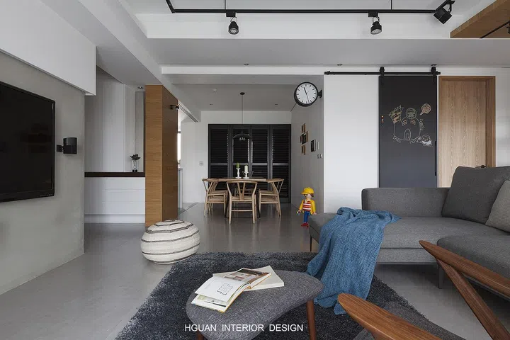 This apartment in Zhubei City, Taiwan has a colour palette of greys, whites and wood tones.