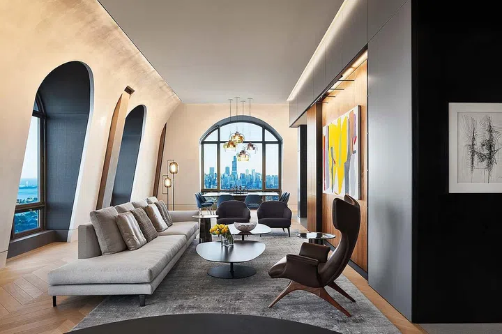House Tour: A stylish mansard penthouse in Chicago with a uniquely curved interior
