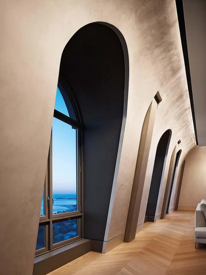 To create a sense of soaring lightness, the team chose to use materials such as polished plaster. “Polished plaster has a luminous, delicate character that helped provide a lightness to the vaulted forms,” says Jon. The lighting strategy, which was designed in collaboration with Lux Populi, also played an important role in defining the arches: indirect lighting reflects off the walls, highlighting the curves while reducing glare from the windows during the day.
