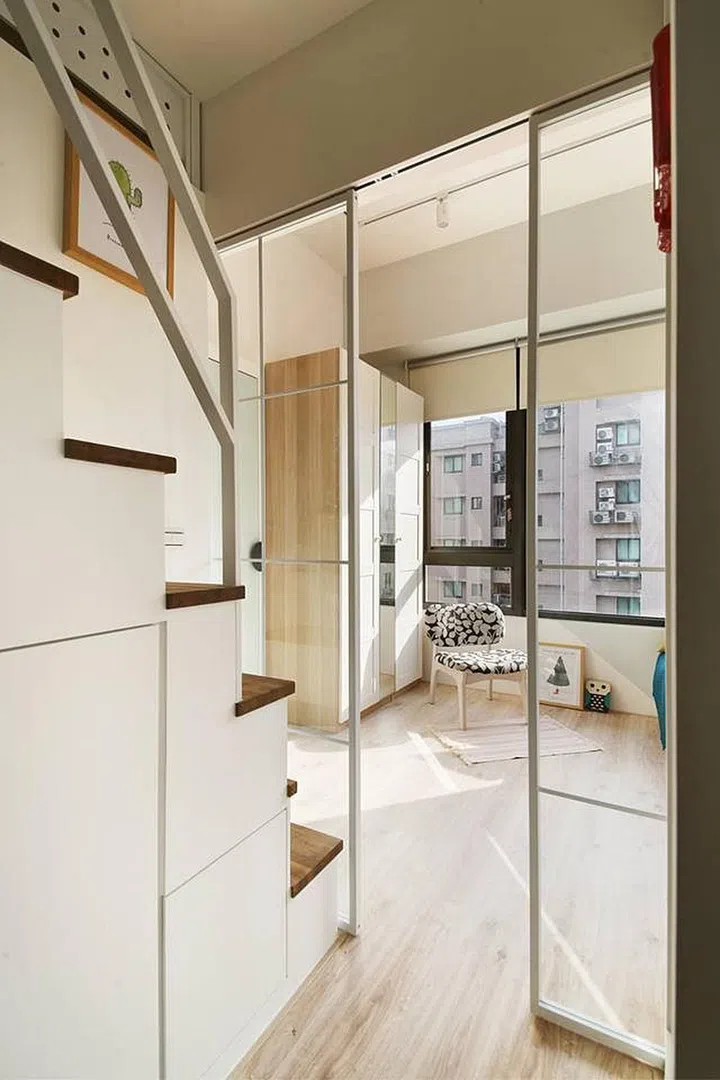 This tiny apartment in Taiwan received a complete makeover by A Lentil Design, and is now a cosy home to a young couple and their cat.