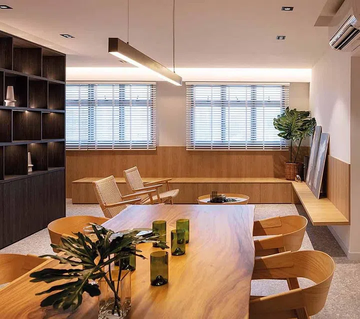 “We want the users to move into a bright and airy space where they feel comfortable,” says Lim Shinghui, founder and principal architect of L Architects, who helmed the project. “The interior layout has been reconfigured to form fewer but larger living spaces that allow for more natural light.”