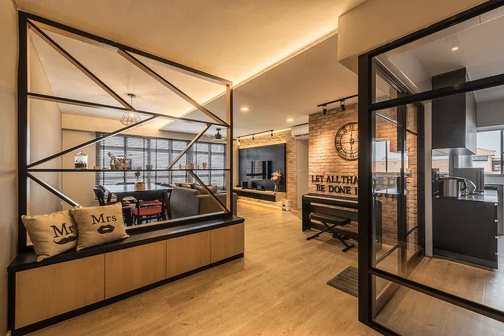 Visually engaging designs instantly captures one's attention as you step into this Tampines HDB apartment.