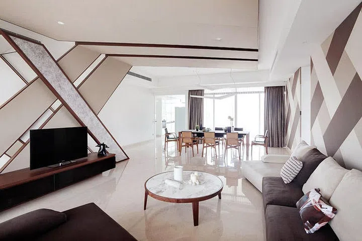 The family wanted the home to be transformed into a cosy retreat tailor-made for relaxation. Designers Ummi NH and Elden Lim from Substance Living decided on a visual theme based on strong lines, centred on the image of a ribbon as the concept to unite the different spaces in the home.