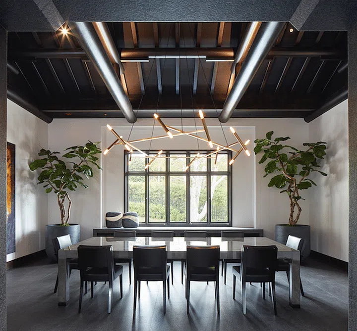 “Chinese technique and execution have stood the test of time for good reason and I find those qualities often subtly referenced in my own work,” he reveals. A Le Pentagon chandelier by Jonathan Browning Studios anchors the dining room, striking a dialogue with a Gordon dining table below.