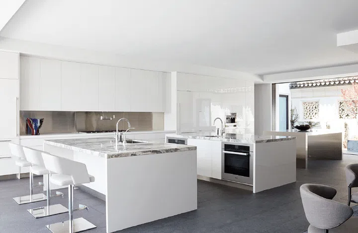 The kitchen and morning room form one large space, allowing for a large- scale kitchen as well as a more intimate family-style lounge and entertainment area within the same zone.