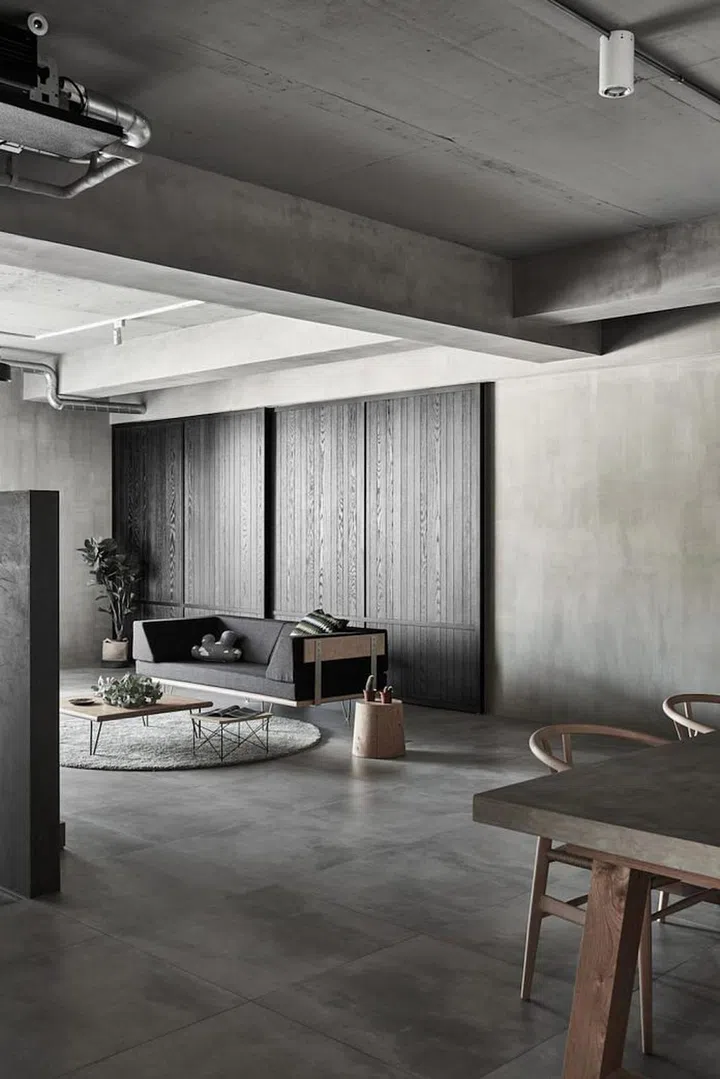 Think 'Nordic design' and pastel hues with wooden textures would usually spring to mind, but not so in this contemporary-styled apartment designed by Hao Design. In fact, the cement tones and stone textures point more towards an industrial influence. So what gives?