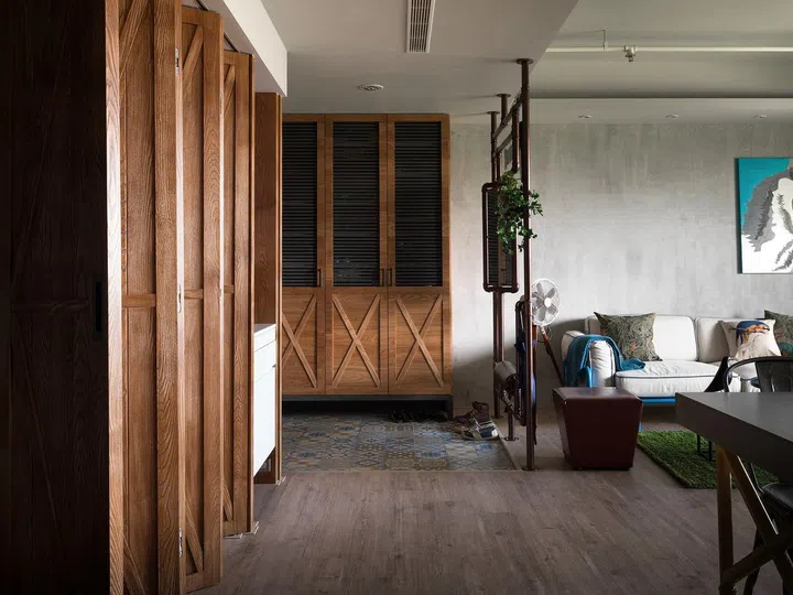 This Taiwan family mixed the ever-popular Industrial and Barn interior design styles, allowing some grey area to inject bright, cheerful colours of yellow and green to create a welcoming family home.