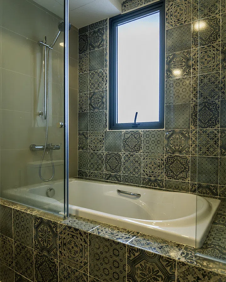 The master bathroom continues the home’s design narrative with patterned tiles that echo the retro sensibilities found throughout the apartment. At $17,000 excluding furnishings, this Clementi DBSS renovation proves that thoughtful design and personal style don’t require an extravagant budget - just a clear vision and careful execution.