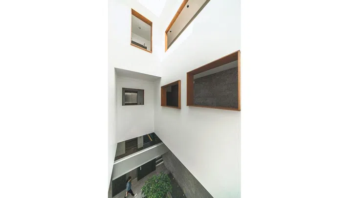 To ensure that the kids’ and the master bedrooms have ventilation and light, Kee Jing Zhi, a founding partner at Freight Architects, strategically placed square and rectangular-shaped openings on the walls along the corridors. From these openings, the family can look down into the courtyard. “Most homes look outwards for the view, but here, I’ve also created a home that looks inwards,” he says.