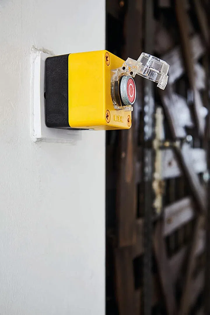 Steel bolts were added to the top and bottom of the couple’s walk-in wardrobe doors to make the concrete and steel encasement aesthetic more realistic.