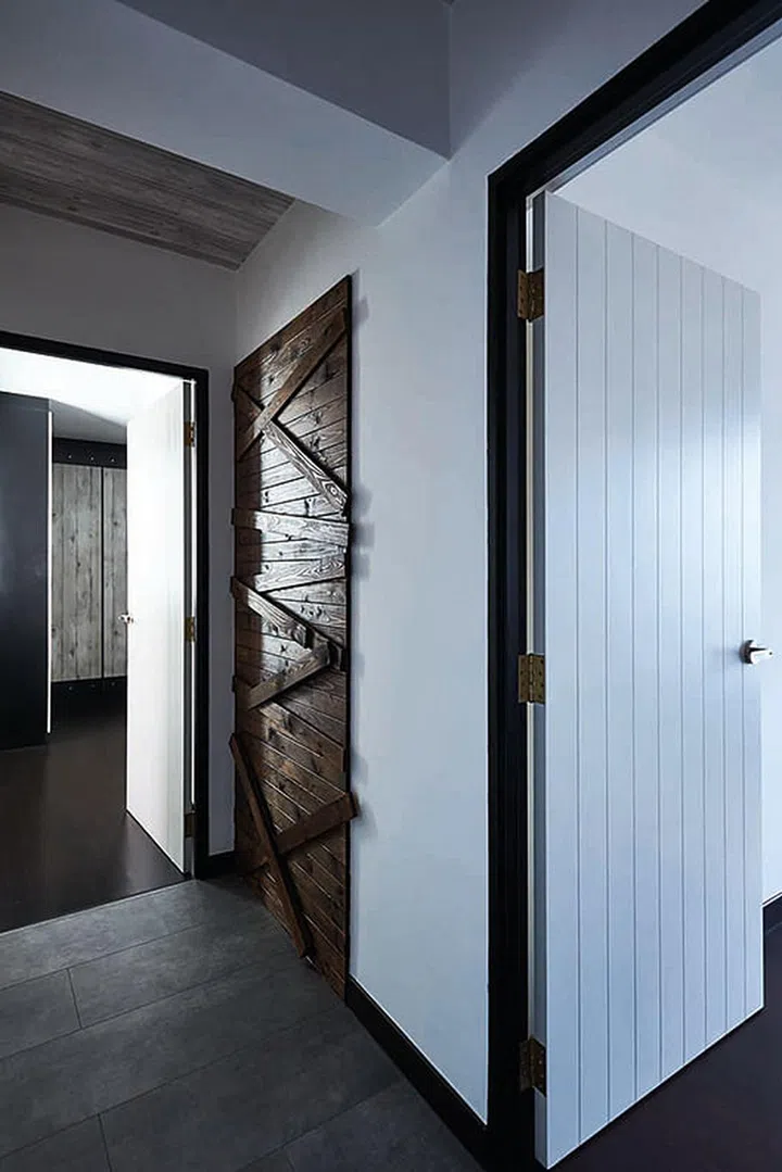 Kelvin designed a long wooden closure, with planks randomly nailed across it, mimicking the hastily sealed doors of old buildings. This closure seals up the old opening of the adjacent bedroom.