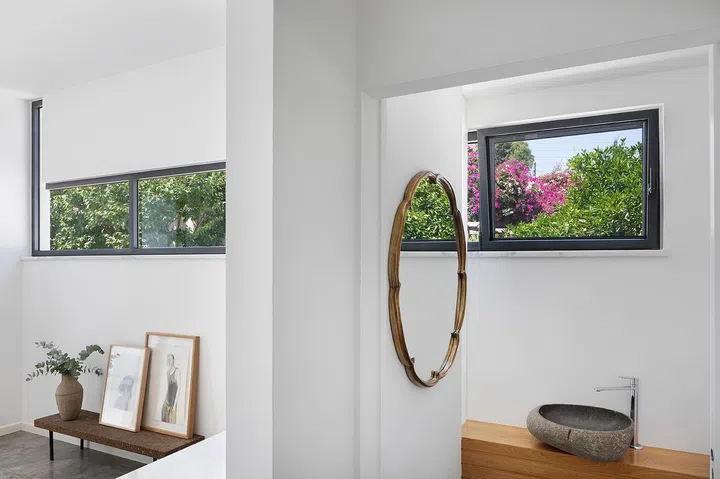 The only luxury concession is a timber decking that juts out to the garden from the master bathroom, culminating in a circular whirlpool just for the parents.