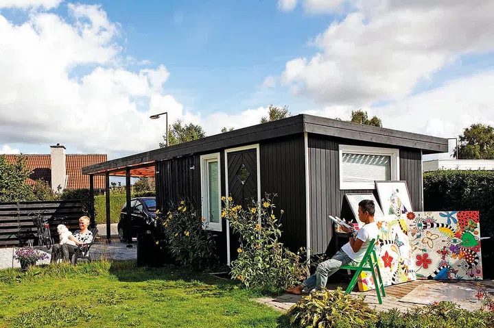 Tatjana Schantz Johnsson's multi-hued home stands out against the blue-skied serenity of Sig, a little village “counting 1,000 souls on the west coast of Denmark”, she says.
