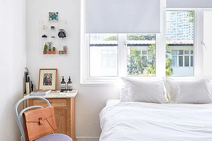 The bedroom, tucked away on the upper level, is a true sanctuary. The serene and understated style, with just the basic essentials and a mix of old and new furniture, provides a peaceful retreat from the outside world. This space allows the owner to recharge and reflect on the many adventures and experiences that have shaped his life, all while surrounded by the comforting black and white palette that defines the colonial terrace house.