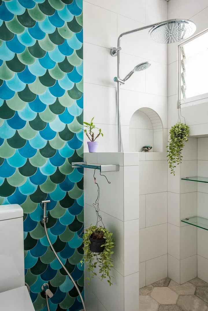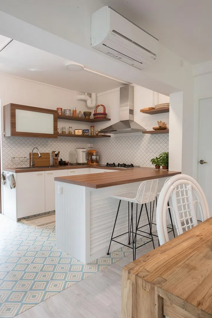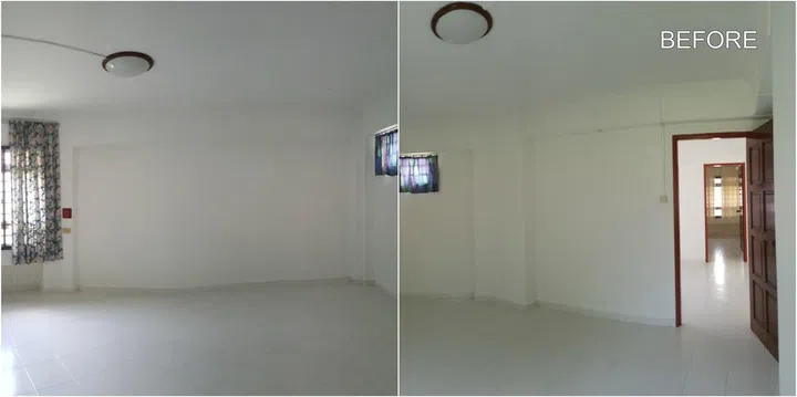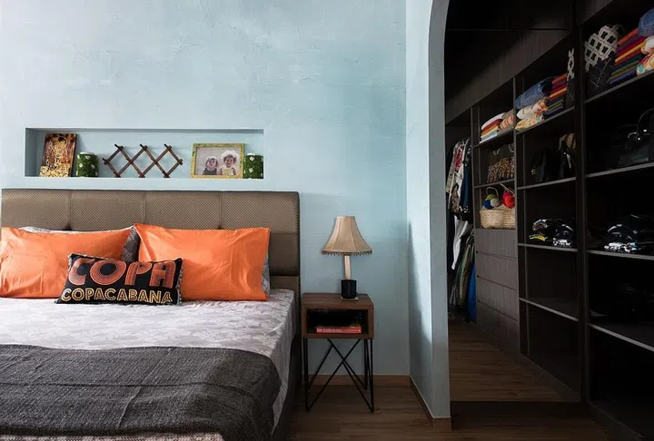 As the homeowners love handicrafts, the walls were left blank so that they can put up new pieces as they create them.
