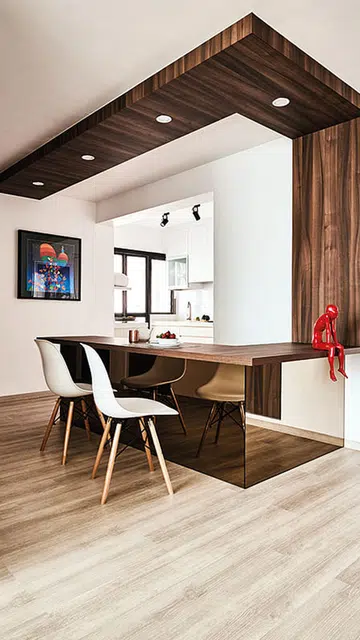 “When I first saw the flat, it was very clear that I had to remove the wall between the kitchen and the dining area for a larger space,” says Lilian. This strategic decision immediately opened up the living area, creating a more expansive and inviting environment. Carefully curated framed art from Ode to Art adds personality and visual interest to the space, complementing the open-concept design.