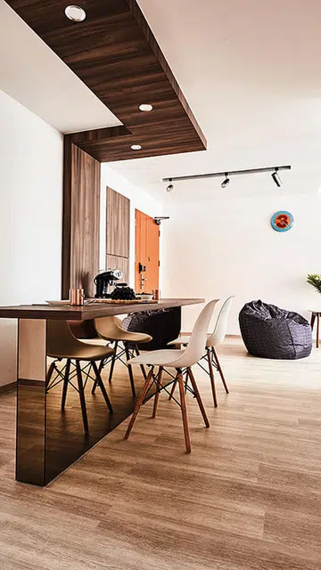 The heart of the home’s clever design lies in its multifunctional furniture. The fixed, L-shaped dining table is a true chameleon – serving not just as a dining surface, but also functioning seamlessly as a kitchen worktop and a versatile desk. “I use this L-shaped dining table when entertaining my guests, too,” Lilian explains, highlighting the space’s adaptability.
