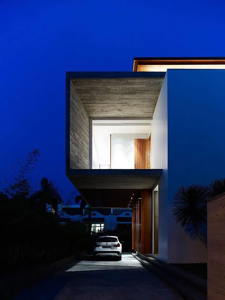 This cantilevered space above the porch becomes a feature of the home, with the light grey cladding bringing the space to life.