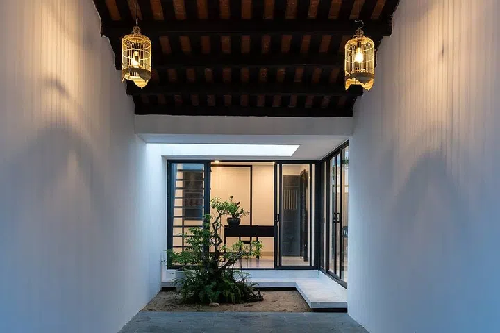In the front courtyard, the garden is exposed to the sun so that the homeowners can also convert the plot into an urban garden.