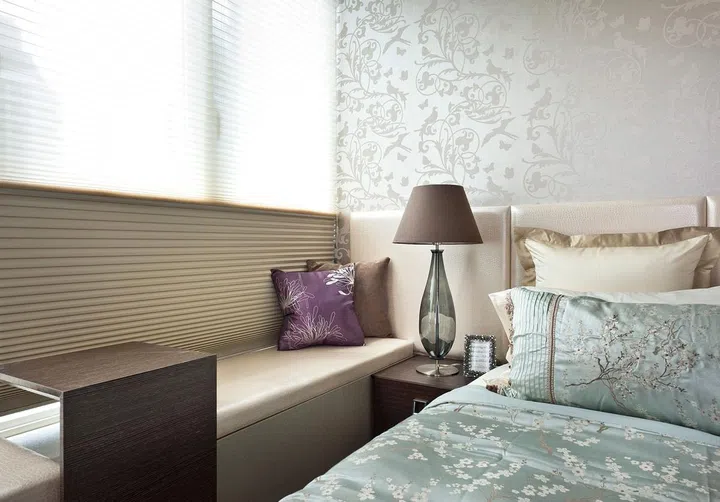 As the master bedroom is relatively small, Eddy designed a low-height headboard that extends from wall to wall. This has the effect of making the room appear wider than it actually is.